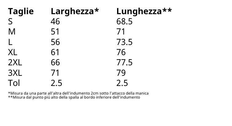 Guida alle taglie